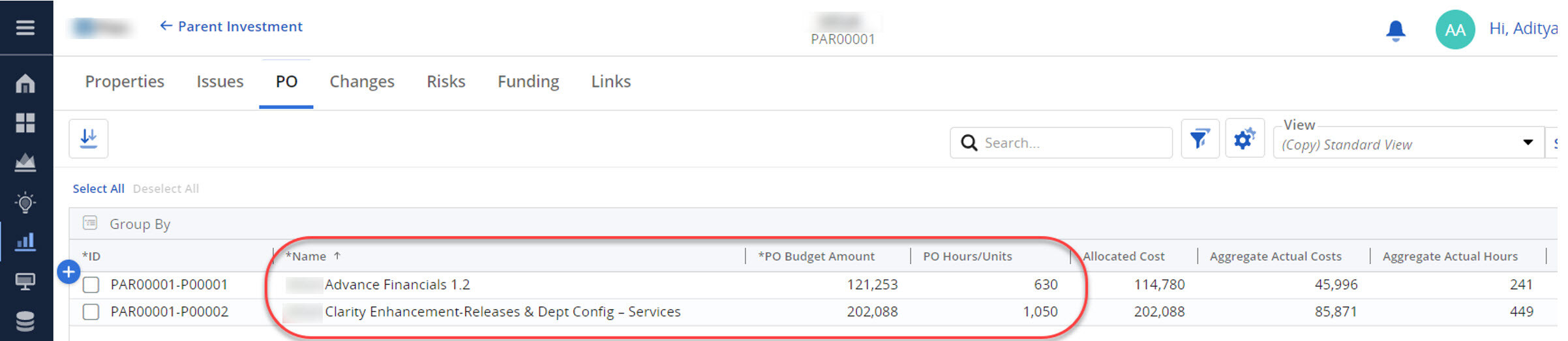 Now, the question arises: How does UCLA manage finances at such a high level? Winmill PPM developed a system in Clarity PPM to help UCLA campuses manage their funds effectively. When a campus is ready to utilize approved funds, a Purchase Order (PO) is created in a custom sub-object of the Parent Investment. This PO sub-object tracks the distribution of funds and additional metrics, such as hours used and aggregate cost, for each initiative.
